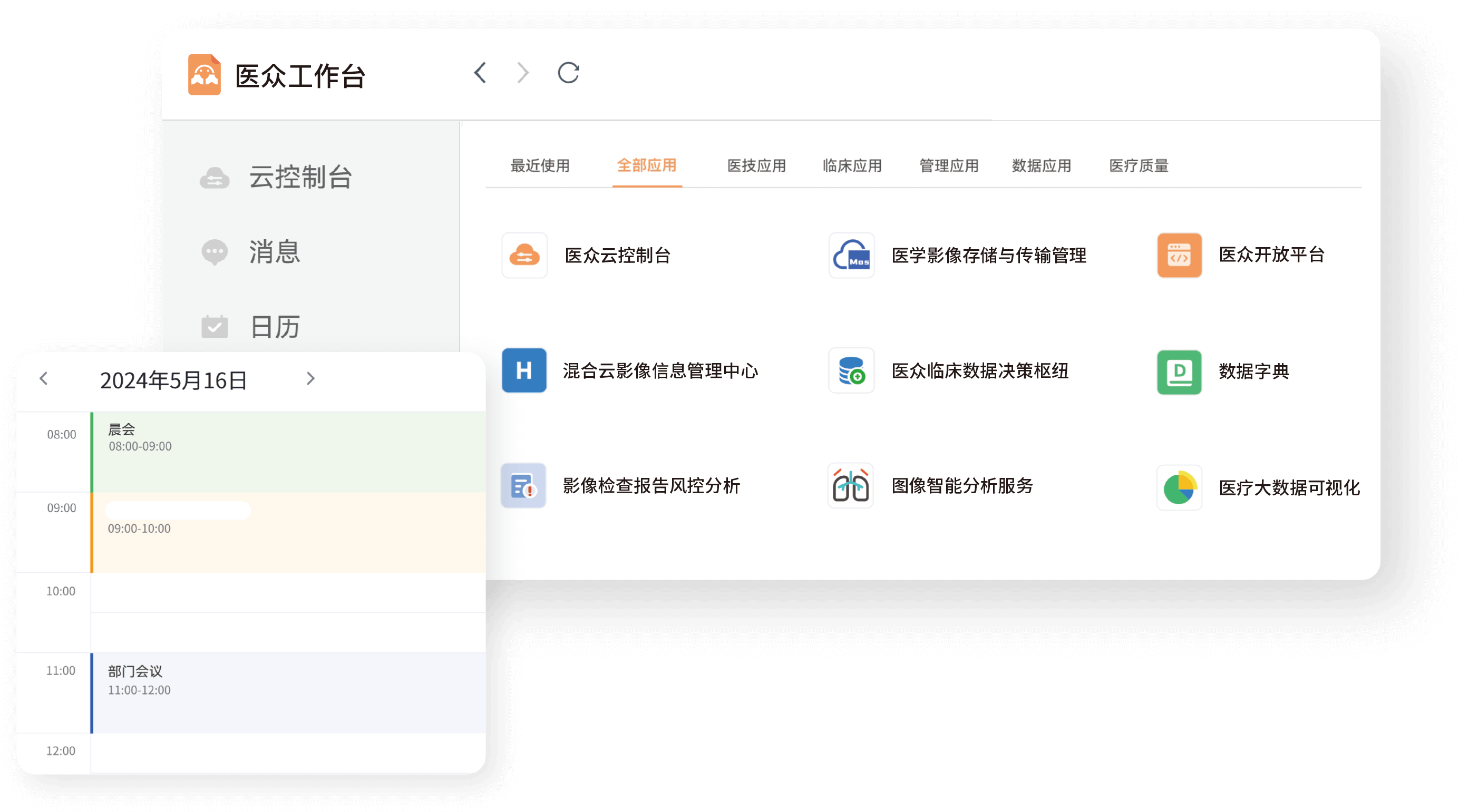 醫(yī)眾工作臺是承載醫(yī)眾全部數(shù)據(jù)能力與功能的應用框架,采用 Docker 技術進行分布式部署。每一位用戶都擁有完整且獨立的云端節(jié)點。